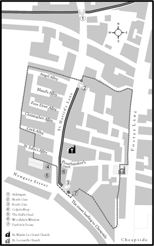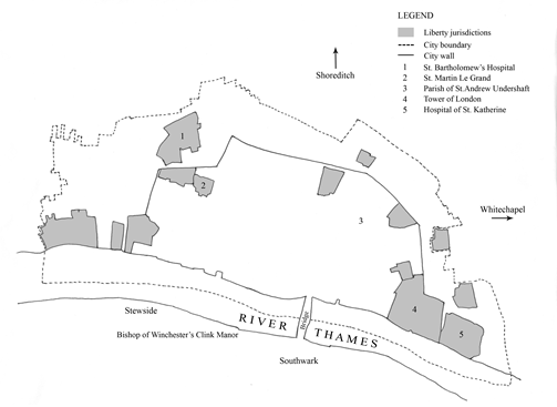 Between 1508 and 1517, a string of six homicides occurred within the precinct of the collegiate church of St. Martin le Grand. Located just north of St. Paul’s cathedral and about the size of a football field, the precinct of St. Martin’s was a complicated place: it was an ecclesiastical liberty, making it independent from the jurisdiction of the civic government of London although it was within the city walls, and it was a sanctuary, a territory within which accused felons and debtors could shelter free from arrest by sheriffs or creditors. The collegiate church of St. Martin le Grand had formerly been an independent ecclesiastical institution under the rule of a dean, but in 1503 King Henry VII had granted the church (and its income producing properties) to Westminster Abbey to pay for a new chapel.