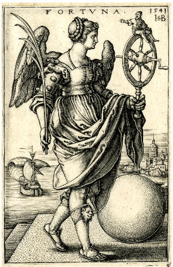 Sebald Beham, engraving of Fortuna, 1541, via the British Museum.