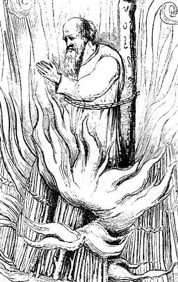 An image depicting the burning of John Rogers for heresy, from John Foxe's Book of Martyrs.