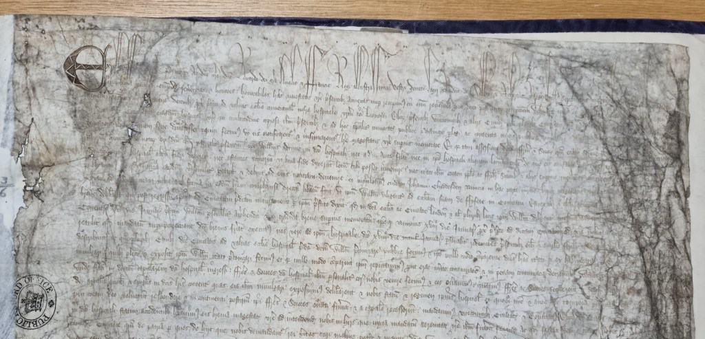 Though The National Archives holds the records of the central law courts and their related jurisdictions, there were other legal systems and courts in play, whose records are held elsewhere. Ecclesiastical courts were granted legal authority from God, first via the Pope, then after the break with Rome via the Supreme Head of the Church of England, the monarch. As such these court records, when they survive, are preserved in their respective diocesan and archdiocesan repositories. However, some records relating to these jurisdictions have ended up at The National Archives. The earliest record on display at the jamboree, C 270/21, described an enquiry investigating alleged abuses committed by William Botheby, master of St Leonard’s hospital, York. A visitation of the hospital was conducted in 1399, and the document includes the original royal commission to conduct this investigation, as well as the copies of the inquests. The reason this document ended up at The National Archives in C 270 (Ecclesiastical Miscellanea created as part of the Chancery’s ecclesiastical business), was because of the ancient right of the Chancellor, the head of the Chancery office, to visit royal hospitals and chapels.