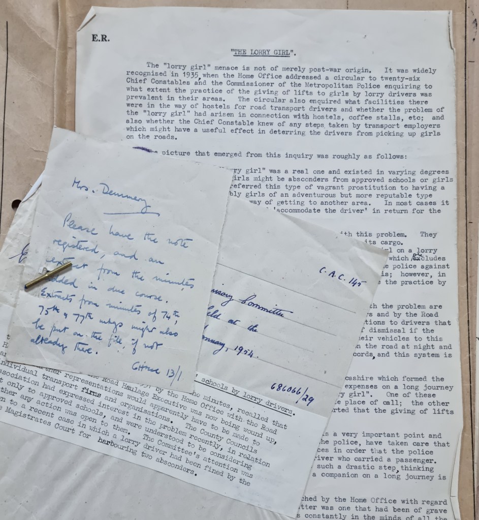 Records of other, non-legal, government departments also comment on legal records and legislation. Two records from HO 45, the registered records of the Home Office, highlight how legal concerns could spill over into the records of other departments. The first, HO 45/24683, concerned the deportation of a gang of Chinese men caught smuggling opium in Liverpool. The second, HO 45/24986, consists of a variety of papers on the so-called menace of the “Lorry Girl”. These were girls, many of whom had absconded from approved schools, who engaged in “lorry-jumping” or hitch hiking as a means of moving around the country. These papers reflect the diversity of domestic matters dealt with by the Home Office, including immigration, gambling, children, drugs, policing, and criminal justice.