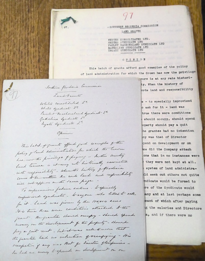 Another document on display at the jamboree, TS 27/163, concerned Britain’s imperial administration in relation to law. The file concerns reports compiled on claims made to the Southern Rhodesia Lands Commission after the decision of the Judicial Committee of the Privy Council in the Special Reference as to the Ownership of the Unalienated Land in Southern Rhodesia. Although they appear unpromisingly formal and bureaucratic, these reports shed light on the ways in which they question the integrity and value of British imperial dealings in Africa, and step outside of official narratives of British superiority, efficiency, and benevolence. They afford us rare insights into the unguarded opinions of officials, expressed in papers which were not intended for publication. In this case, we also have an example of records being found in a Treasury Solicitor series which fill gaps left by records which are closed or missing at transfer in other record series.