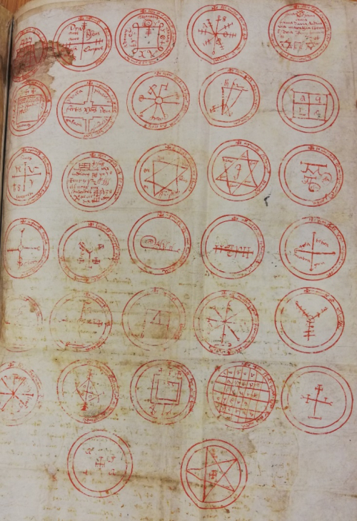 The magical seals come from a late 16th century–early 17th century text: British Library, Add MS 36674, f. 111r, courtesy of The British Library.