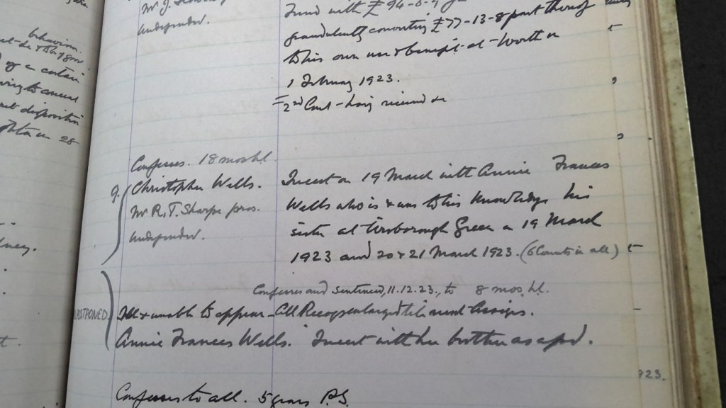 So much for the cause celebre of Edith Swan; what else can the crown minute book entries for Lewes in July 1923 tell us about the position, treatment, and experiences of women in England at this time? As it turns out, the answer is quite a lot.