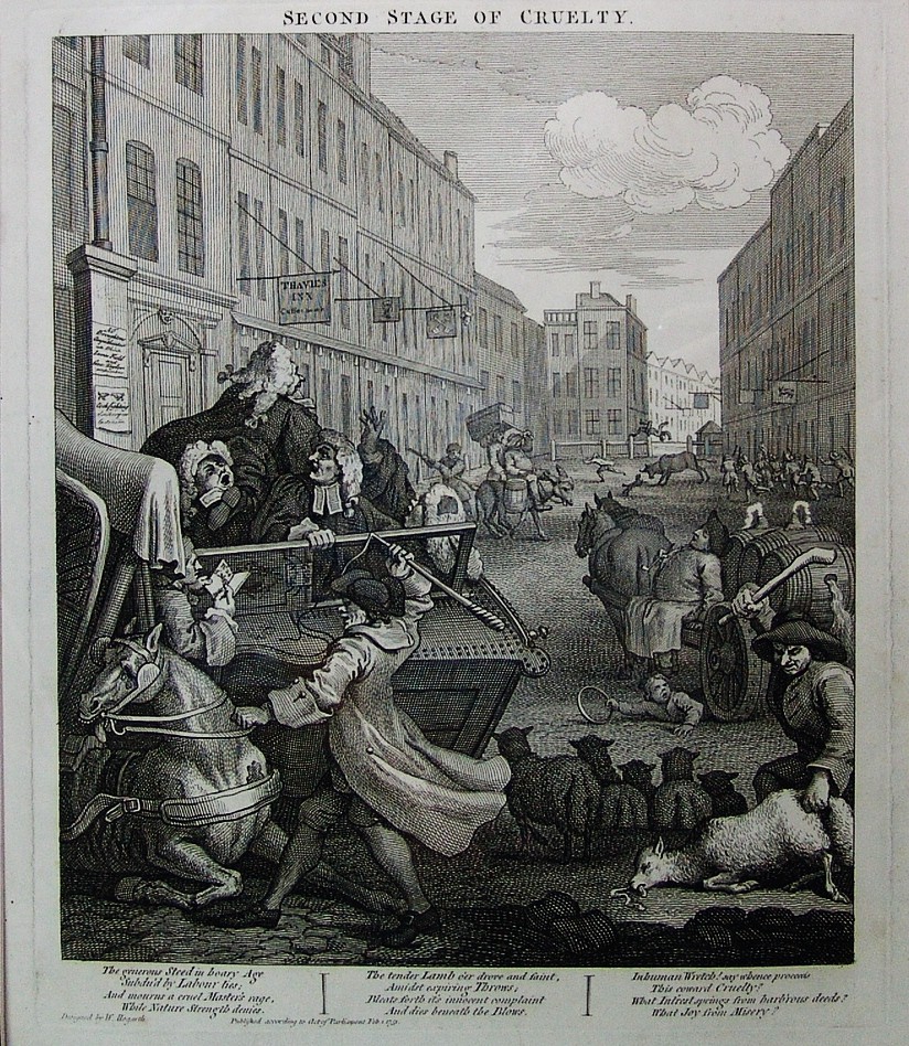 Figure 2: William Hogarth, The Second Stage of Cruelty: Coachman Beating a Fallen Horse, 1751. Public domain, Wikimedia Commons.
