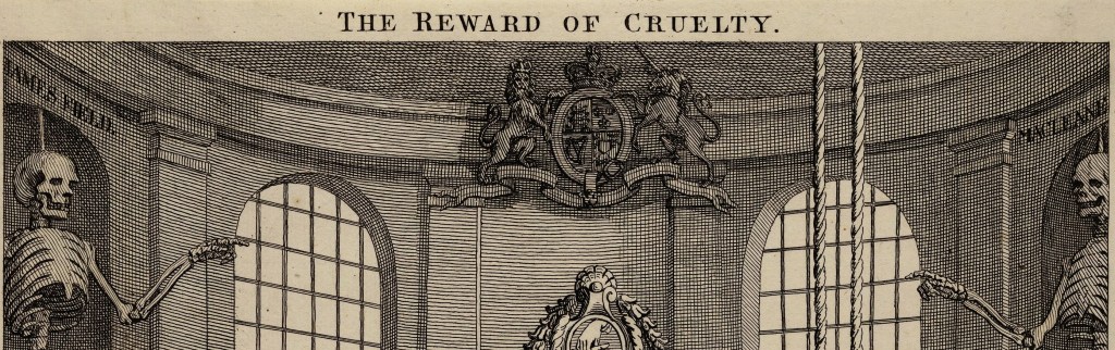 Banner image and Figure 4: William Hogarth, The Reward of Cruelty (The Four Stages of Cruelty), 1 Feb 1751. Public domain, Wikimedia Commons.