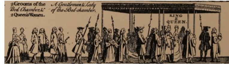 Images of the coronation of James II come from Francis Sandford, The History of the Coronation of the Most High, Most Mighty, and Most Excellent Monarch, James II (London, 1687), public domain.