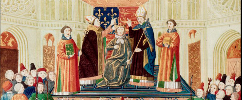 Medieval coronation, from Froissart’s Chronicles, via Wikimedia Commons.
