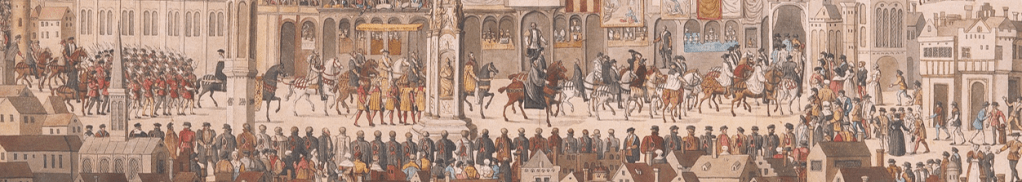 Thereafter, a new sovereign’s officials and heralds proclaimed the coronation pardon near the end of the public ceremony, while the bishops, dukes, and earls paid their personal homage to the king or queen and before the final anthem of praise. The terms of the pardons differed in excluding specified offences or offenders. But everyone who was anyone—and then some—paid the fees to get their names added to the pardon rolls that followed, whether implicated in wrong-doing or not. Roughly 800 people availed themselves of Edward VI’s coronation pardon, for example. Thousands more would make use of the pardons issued by each of the later Tudor and early Stuart monarchs in their coronation ceremonies.[6]