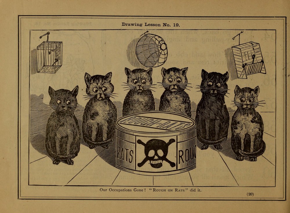 Victorian advertising trade card for rat poison, from the Rough on Rats company, printed in New York circa 1885. Free to use at Pinterest.