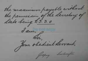 But the Home Office, who had to approve all Met Police expenditure, balked at the potential cost, and in March 1890 its permanent under secretary of state (1886-95), Godfrey Lushington (1832–1907), told Monro that the “maximum payable without the permission of” the Secretary of State would be 3 guineas (the normal fee for an autopsy report delivered to an inquest was 2 guineas) and that the inquest verdict had to be in.[7] In April 1890 Monro was told to keep “a careful account … of cases in which a report is asked for under this authority.”[8]