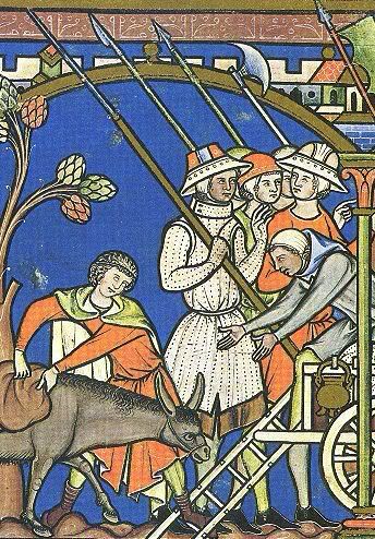 Second, Henry adds new details about the degree of violence involved in his abduction. When his abductors arrived at Furneux Pelham, they were dressed as if for war, sporting acton (a quilted jacket worn under a breastplate), gambeson (a padded defensive jacket) and bascinet (an open-faced helmet). They found Henry in a church (blasphemy, anyone?) from which they dragged him while he was in the midst of raising the hue and cry. He did not know where they brought him (perhaps an attempt to let Humphrey de Bohun off the hook?), but he was maltreated and imprisoned from the moment of the abduction (3 July) until the time of his release on 7 October. Damages for the abduction, ill-treatment, and imprisonment, Henry believed, should be set at £200.