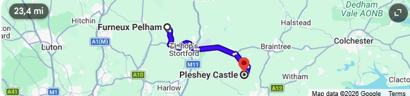 All went seemingly according to plan until Henry reached the age of thirteen years old. It was Saturday, 3 July 1308, and Henry was in Agnes’s custody at one of their homes in Furneux Pelham (roughly 30 miles from South Mimms), when Thomas de Lewkenor, William de Pounz, his son Richard, and John of Felsted, parson of Hadley, arrived with force and arms and abducted (rapuerunt) the young heir. From Furneux Pelham, they conveyed him to Pleshey Castle in northwest Essex, some 23 miles away. The castle was in the possession of Humphrey de Bohun, fourth earl of Hereford, although it is not clear whether the earl was in on the conspiracy to kidnap Henry Frowyk. They kept Henry there by force until 7 Oct. 1308, during which time they coerced him into exchanging vows of marriage with Margaret Pounz, William’s daughter.